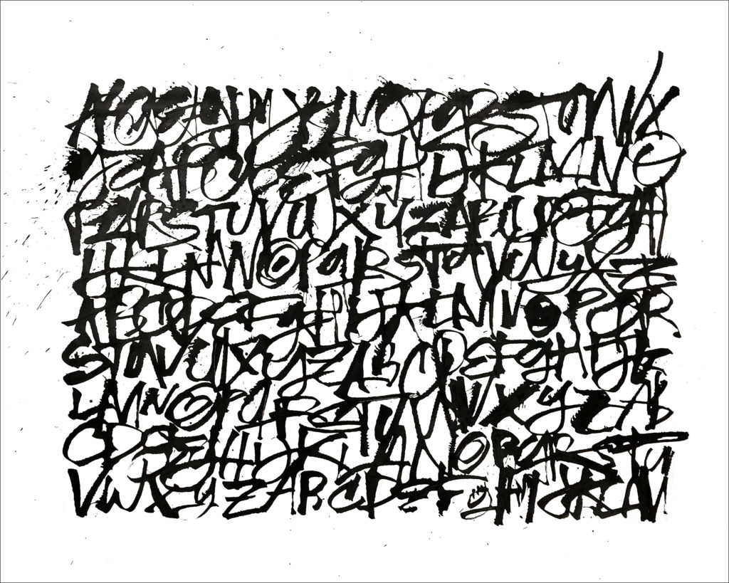 Pieza original de 70 x 50 cms , escrito con rulling pen y tinta china sobre papel extra blanco Shiro Echo, 100% ecológico y reciclado.