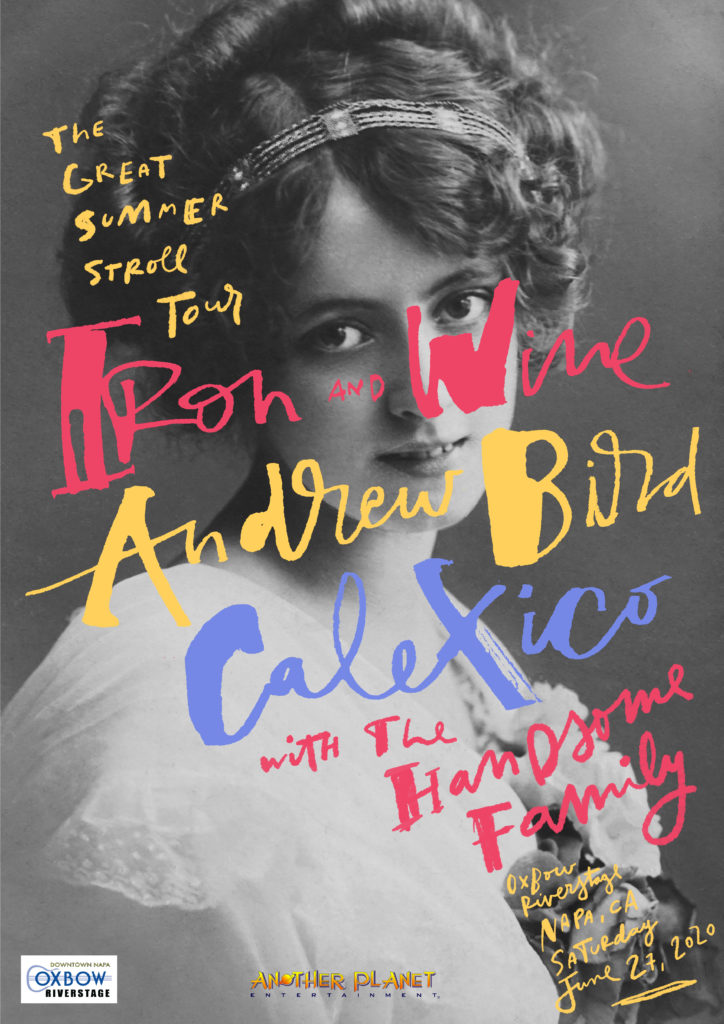 Póster para concierto de Iron and Wine, Andrea Bird y Calexico para la gira The Great Summer Stroll Tour. Lettering original en tinta, escaneado, digitalizado y procesado sobre foto en Adobe Photoshop.