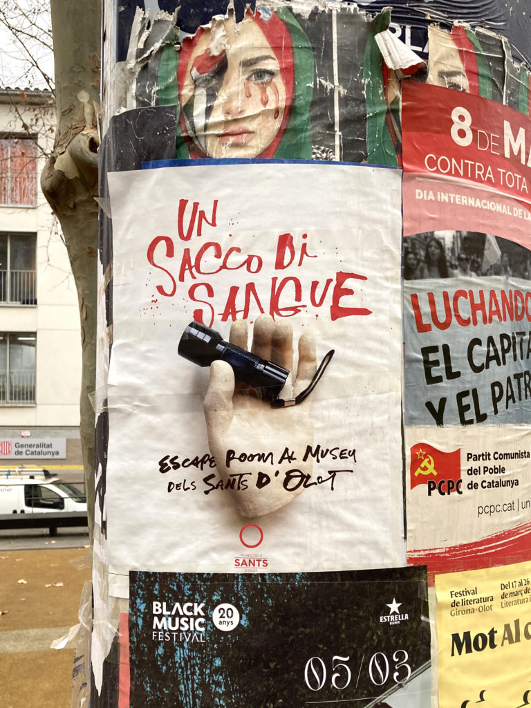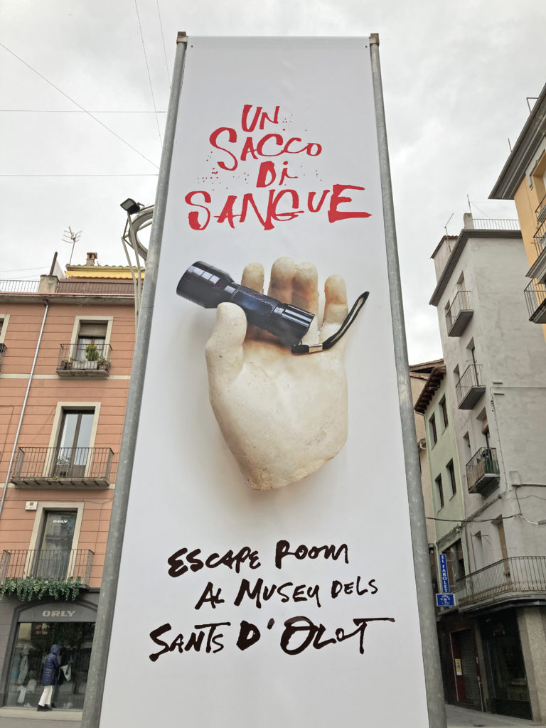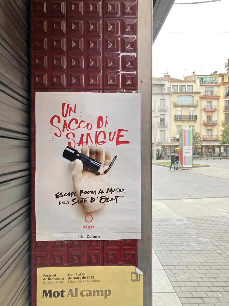 Lettering original hecho en caña para proyecto del Escape Room: Un Sacco di Sangue del Museu dels Sants d’Olot. El lettering está escaneado y digitalizado en Adobe Photoshop y maquetado sobre la fotografía en Adobe Illustrator.